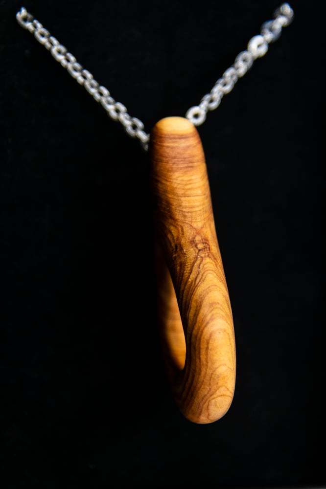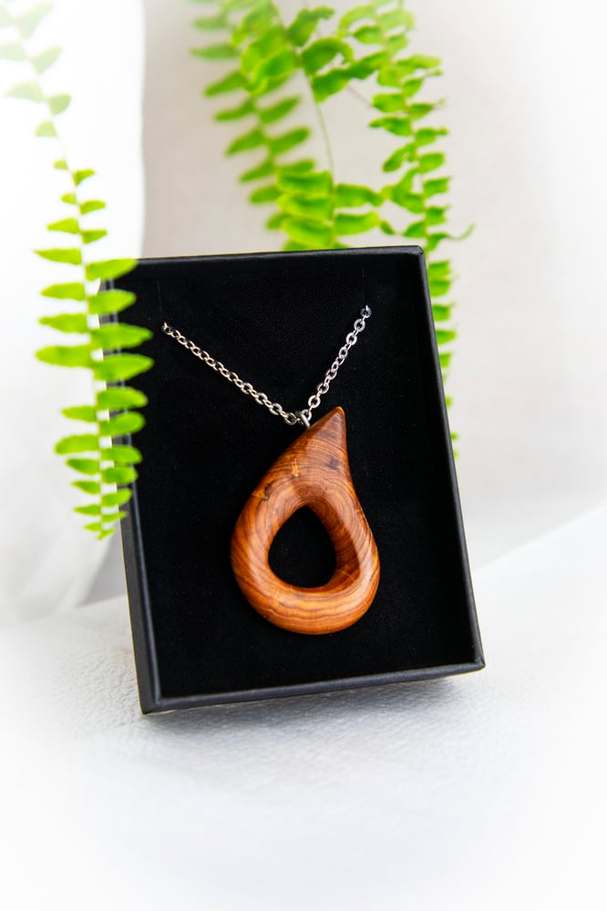 Colgante hecho a mano en madera de enebro, con forma de gota.