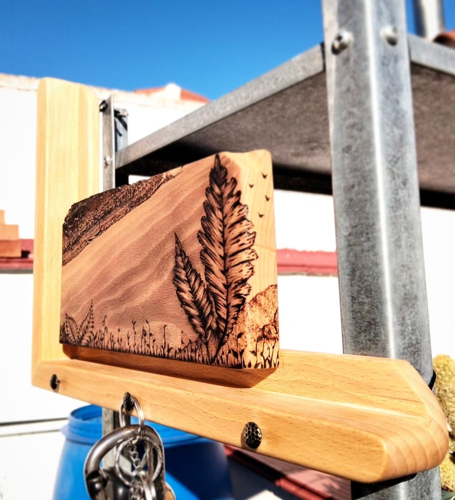 Pyrogravure également à la main (vous pouvez voir le procédé dans mes reels).
