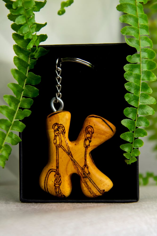 Llavero de madera hecho a mano y pirograbado con motivos de Escalada y Montaña.