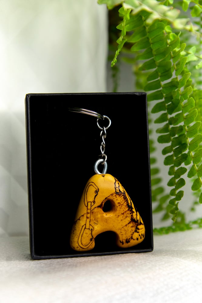 Llavero de madera hecho a mano y pirograbado con motivos de Escalada y Montaña.