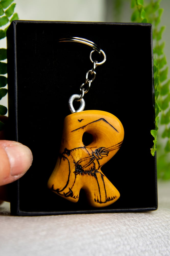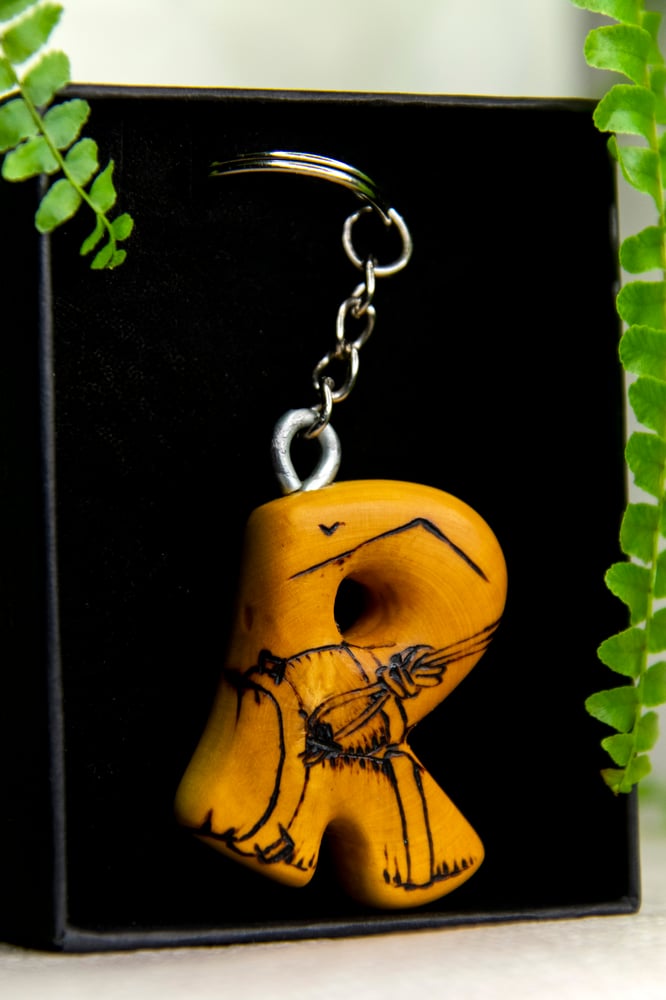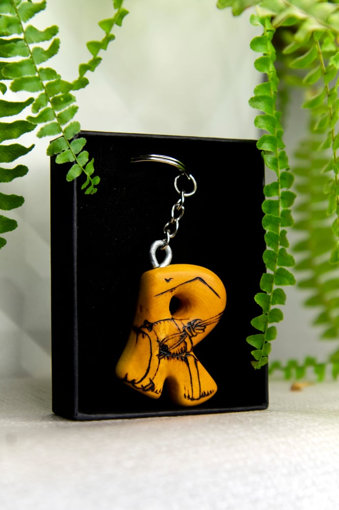 Llavero de madera hecho a mano y pirograbado con motivos de Escalada y Montaña.