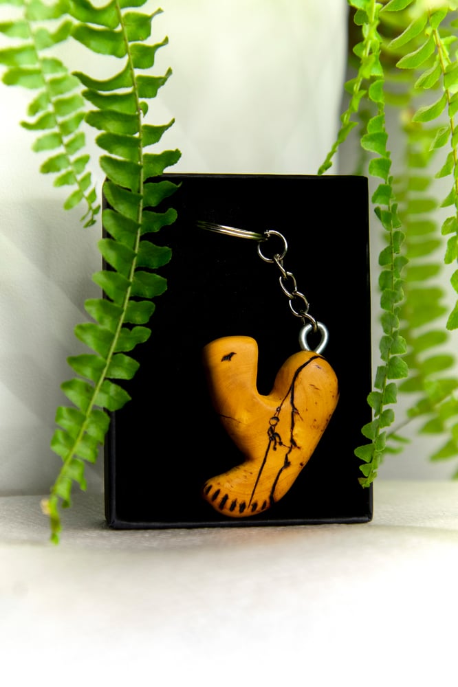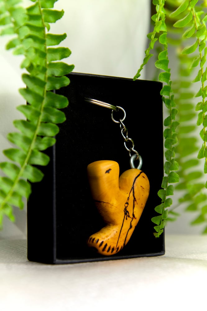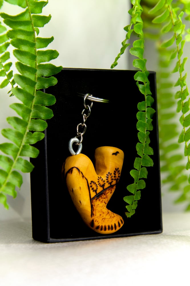 Llavero de madera hecho a mano y pirograbado con motivos de Escalada y Montaña.